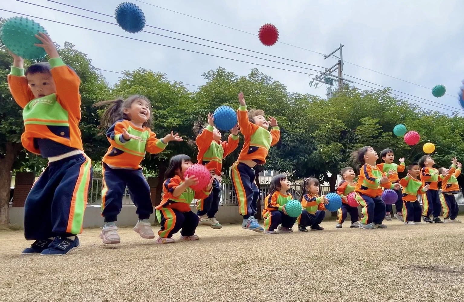】每週安排戶外體能課程,由專業幼兒體適能教室領導,訓練孩子們基礎手腳肌力、核心肌力。